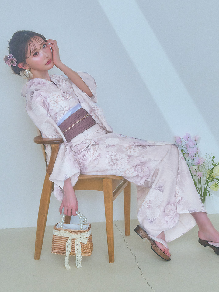 【即日発送】くすみカラー×パープルダリア浴衣【浴衣3点セット 浴衣/帯/下駄】[YMT] [Y-9043-ok-P-F-24YI]