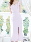 - > Lサイズあり【DEA./ディア】肩フリル/ ダブルボタン/ スリット/ ミモレ丈/ ミディアムドレス/ キャバドレス【OF08】