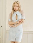思わず目に留まるCUTEなチェック柄とメッシュスリーブが華やかな印象のタイトミニドレス。