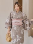 【即日発送】グレージュ線画フラワー浴衣【浴衣3点セット 浴衣/帯/下駄】[YMT]