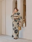大人ベージュに大柄マーガレットが散りばめられた昭和レトロな雰囲気漂う夏浴衣。