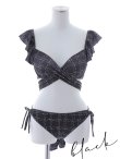 【即日発送!】【ビキニ】バックリボン肩フリルツイード柄ビキニ 2点セット【水着】[YMT] [M231dzj-24RC-B]