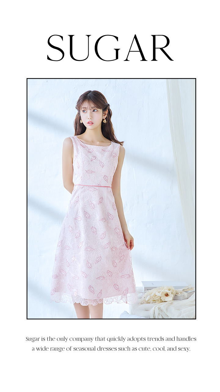 XS-Lサイズあり 【GINZA COUTURE/銀座クチュール】フラワーレース/ ノースリーブ/ Aライン/ フレア/ ミディアム丈/ ワンピース/ ミディアムドレス/ キャバドレス[OF2] [LKC24047-P-S240424]