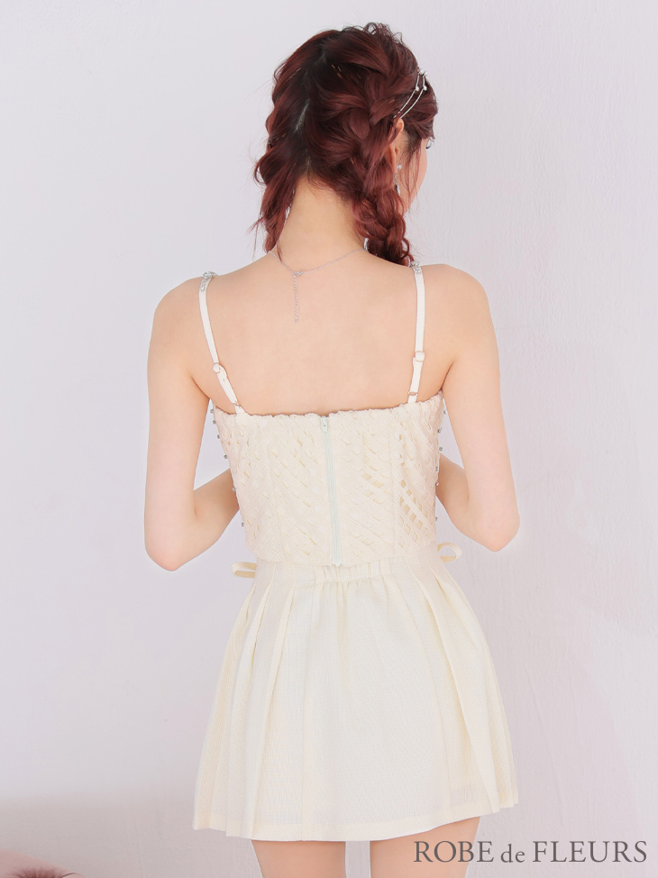 - > XSサイズあり【ROBE de FLEURS/ローブドフルール】 セットアップ/ キャミソール/ビジュー/ リボン/ フロントジップ/ ツイード/ フレア/ ミニドレス/ キャバドレス[OF08]