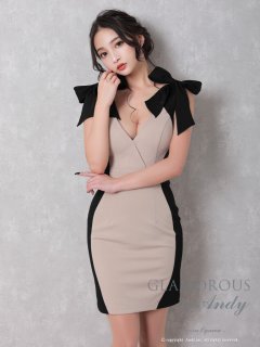 - > XSサイズあり【Andy GLAMOROUS/アンディグラマラス】ハイネック/ バイカラー/ パイピング/ リボン/ カットアウト/ シアー/ 袖あり/ 半袖/ タイト/ ミニドレス/ キャバドレス[OF05]【