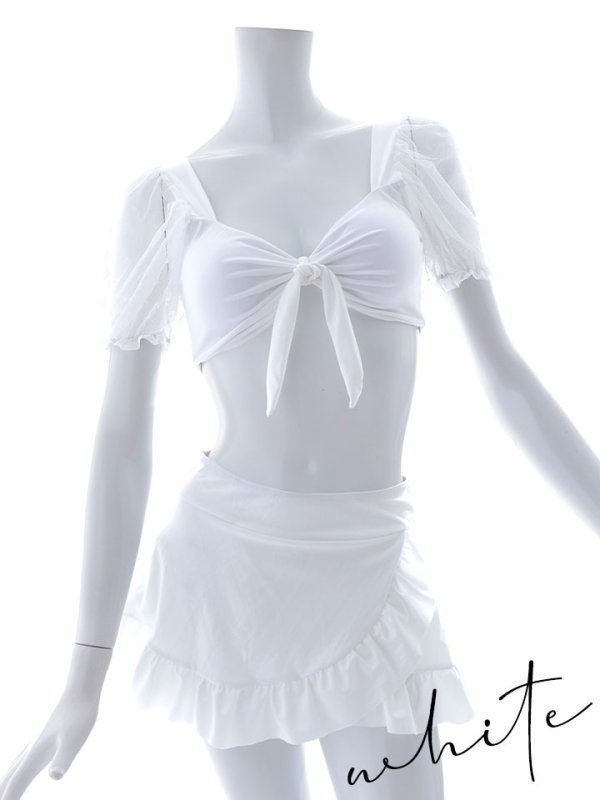 【即日発送】【ビキニ】ドットシアースリーブスカート付きビキニ 3点セット【水着】[YMT] [M218dzj-24RC-P]