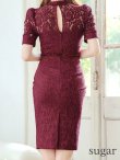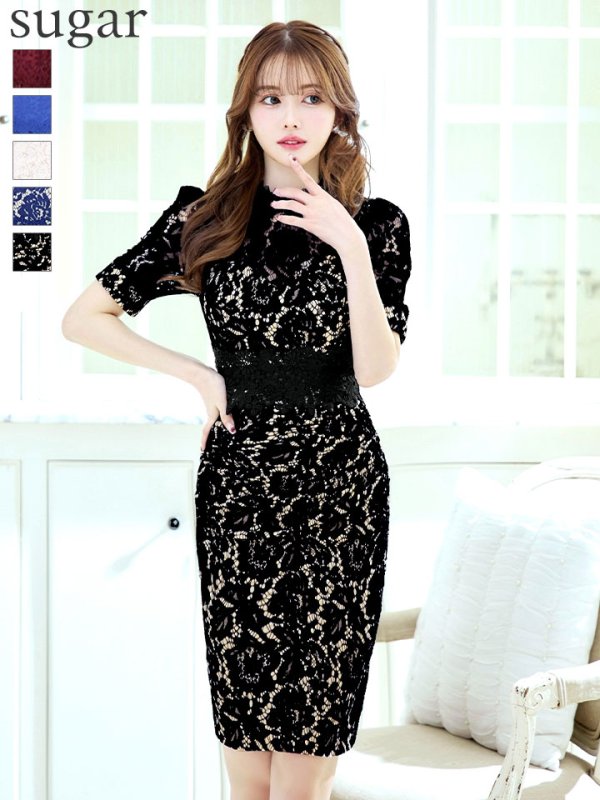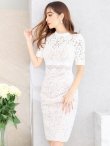 - > Lサイズあり【VANESSA HEART / ヴァネッサハート】 フラワーレース/ 半袖/ 袖あり/ サイドタック/ タイト/ 膝丈/ ミディアムドレス/ キャバドレス[OF05]