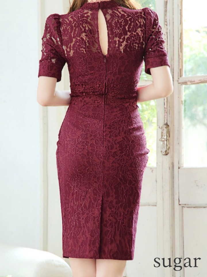 フェミニンなフラワーレースが大人エレガントな雰囲気のタイトミディアムドレス♡