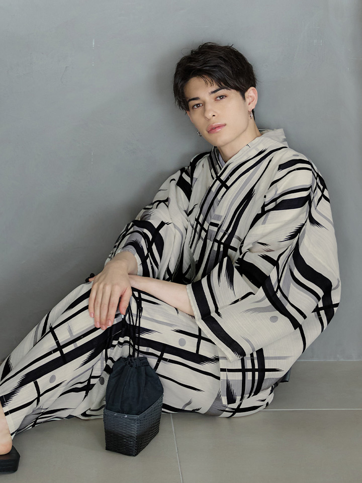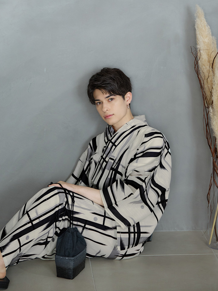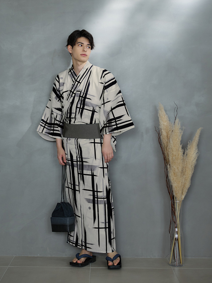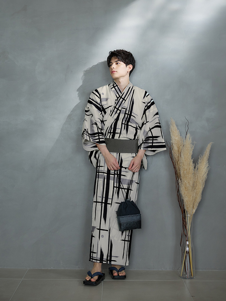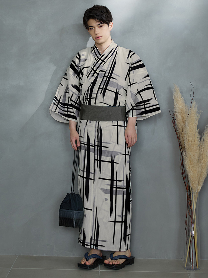 【即日発送】【メンズ浴衣】ストライプ地モダン浴衣【浴衣3点セット 浴衣/帯/下駄】[YMT] [MSY-9051-wk-W-24KV]