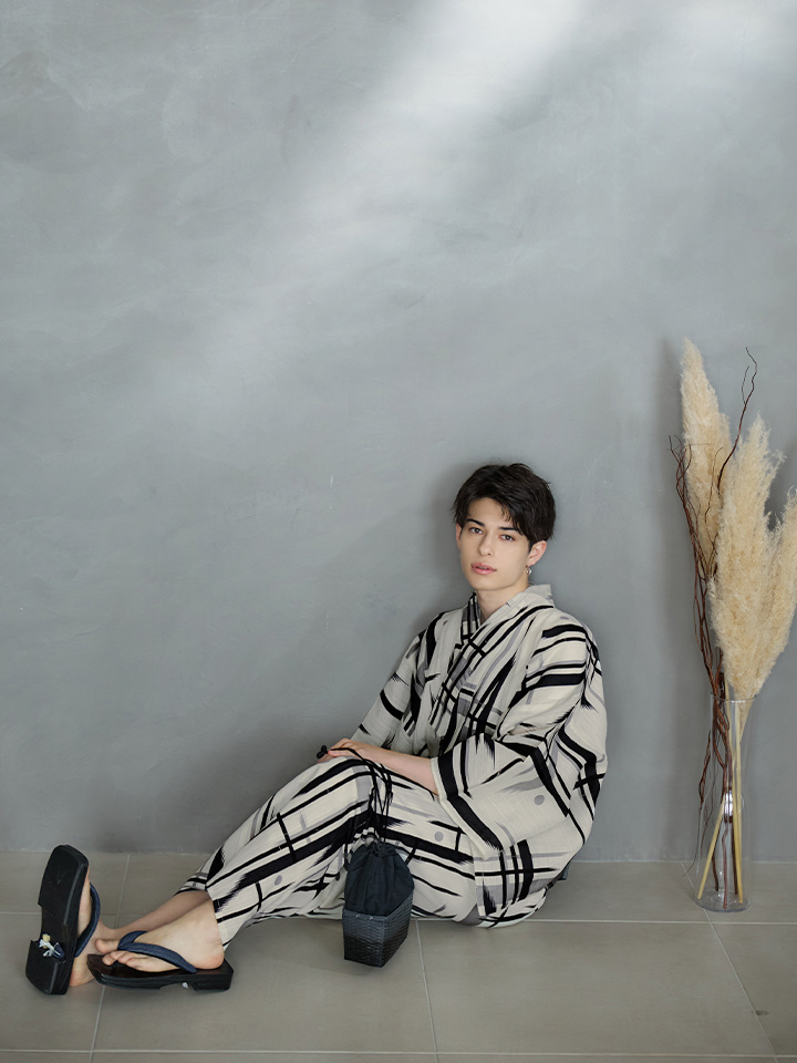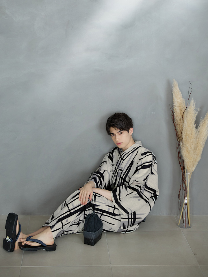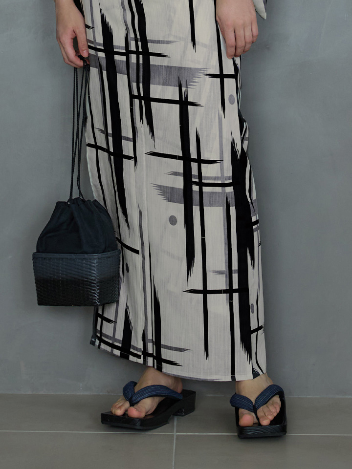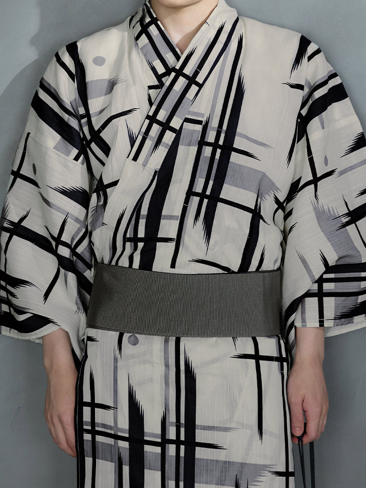 ストライプ地にブラックとグレーのラインのデザインがモダンでオシャレな夏浴衣