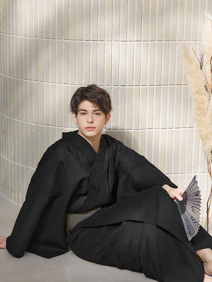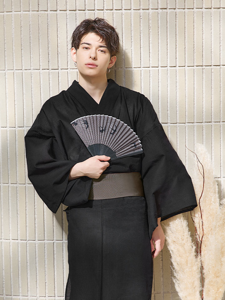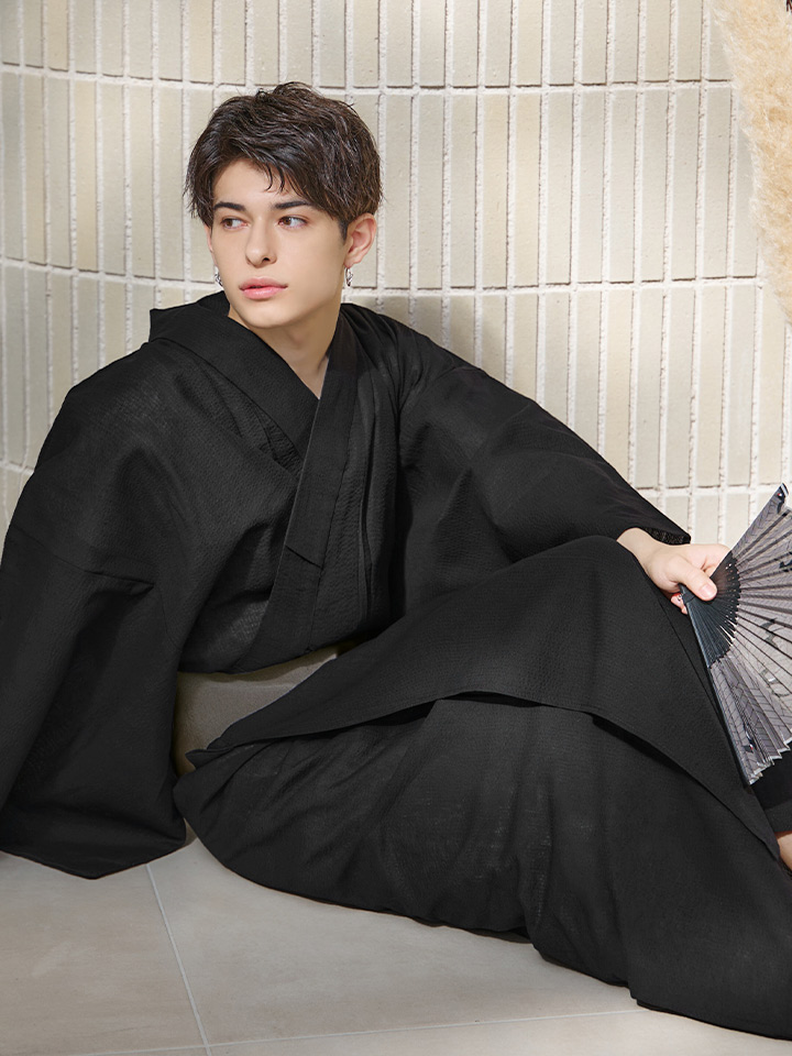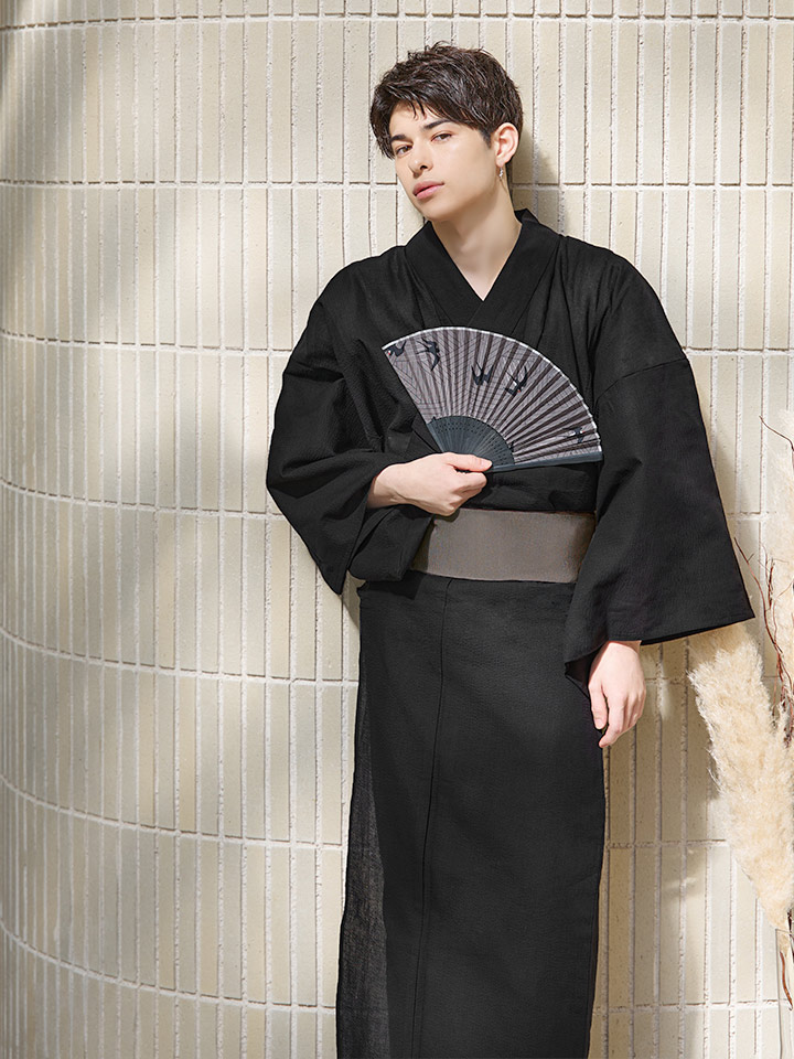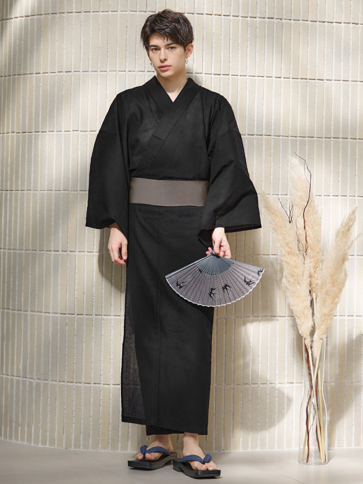 【即日発送】【メンズ浴衣】しじら漆黒無地浴衣【浴衣3点セット 浴衣/帯/下駄】[YMT] [MSY-9055-wk-B-24KV]