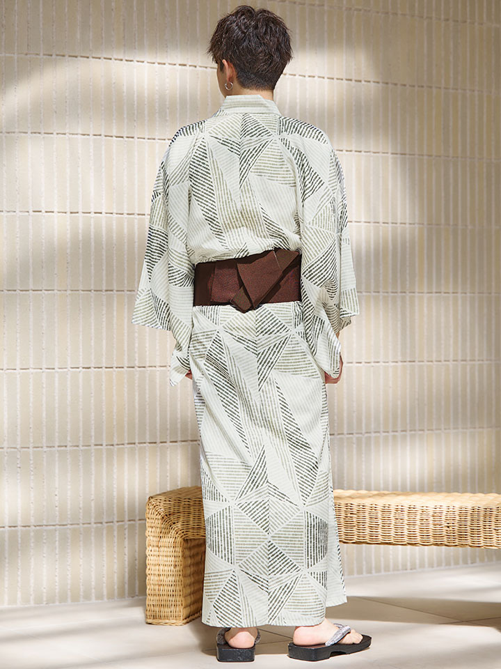 【即日発送!】【メンズ浴衣】カーキグリーン幾何学的模様浴衣【浴衣3点セット 浴衣/帯/下駄】[YMT] [MSY-9002-nz-dzi-W-24KV]