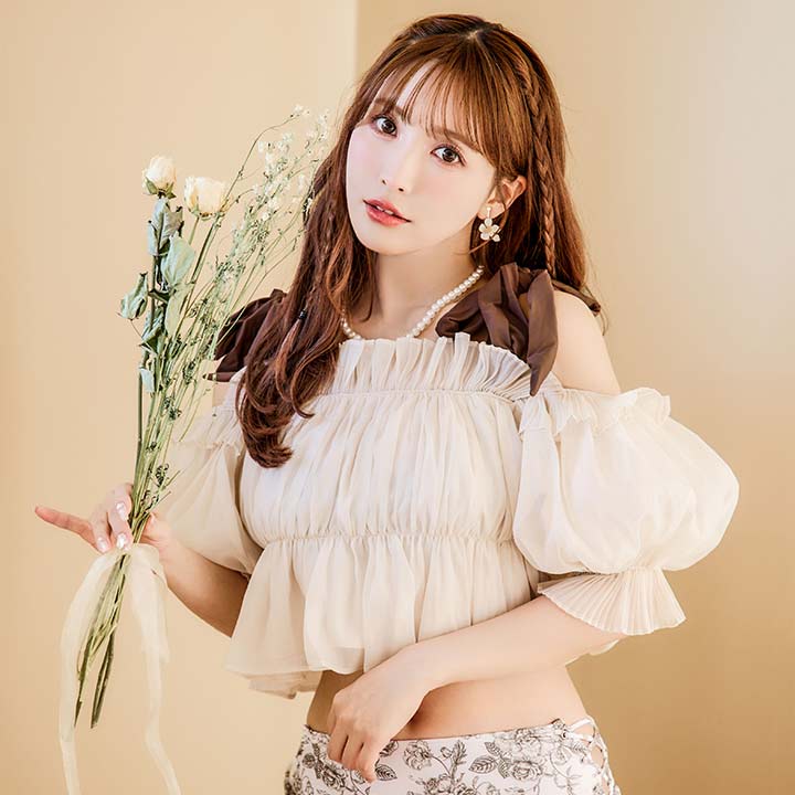 【即日発送】【水着小物:カーディガン】シャーリング/オフショルトップス[YMT] [MG-K018-P]