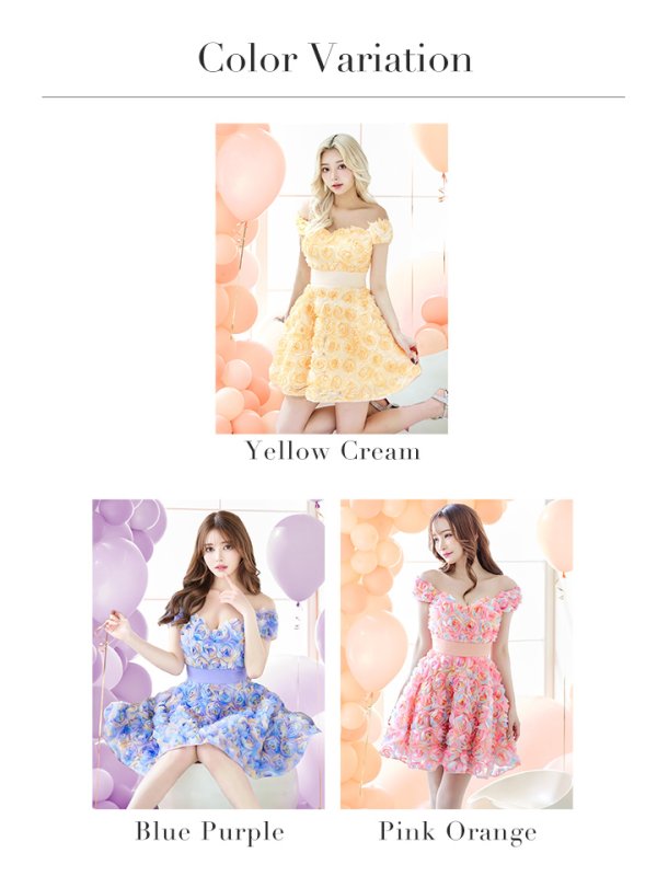 XS-Lサイズあり【Donia Quinn / ドニアクイーン】 オフショル/ 立体フラワー/ フレア/ ハートカット/ ミニドレス/ キャバドレス[OF05] [Q60116Y-YECM-S2406]