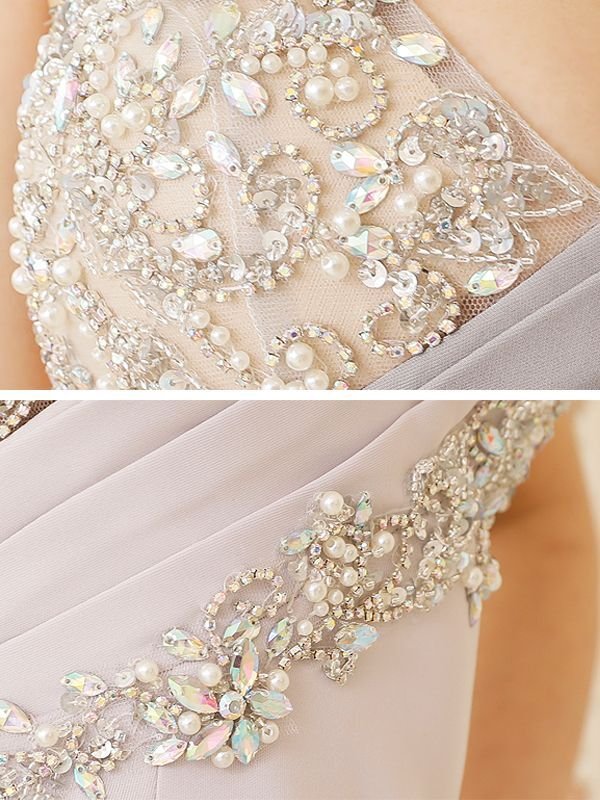 サイドから流れるようにあしらわれたビジューがゴージャス感をプラスし高級感漂う一着に。