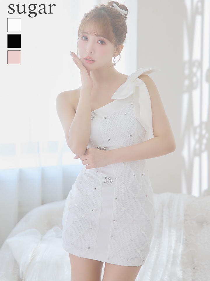 - > XSサイズあり【PURESS/ピュアレス】ビックリボン/ ワンショルダー/ フラワービジューボタン/ タイト/ マイクロミニ/ ミニドレス/ キャバドレス[OF5]