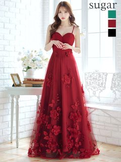 立体フラワーが華やかな印象のフレアロングドレス♡