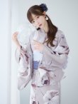 くすんだピンクベージュ地に咲くロマンティックな牡丹が可愛い大人浴衣。