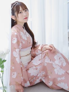 【即日発送】ピンクベージュ牡丹浴衣【浴衣3点セット 浴衣/帯/下駄】[YMT] [Y-8056-nz-dzh-P-F-24KY]