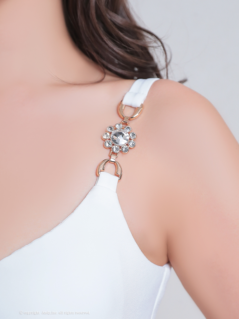 XSサイズあり【Andy GLAMOROUS/アンディグラマラス】ワンカラー/ キャミソール/ フリル/ ストレッチ/ フレア/ スリット/ ミディアムドレス/ キャバドレス[OF05]