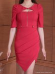- > 【ANDY/アンディ】ワンカラー/ チェーンパイピング/ フロントジップ/ 袖あり/ 半袖/ アシンメトリー/ タイト/ ミニドレス/ キャバドレス[OF05]