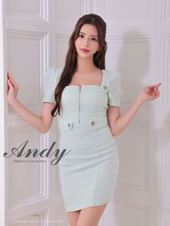 【ANDY/アンディ】ワンカラー/ チェーンパイピング/ フロントジップ/ 袖あり/ 半袖/ アシンメトリー/ タイト/ ミニドレス/ キャバドレス[OF05] [ON2841-BE-2407]