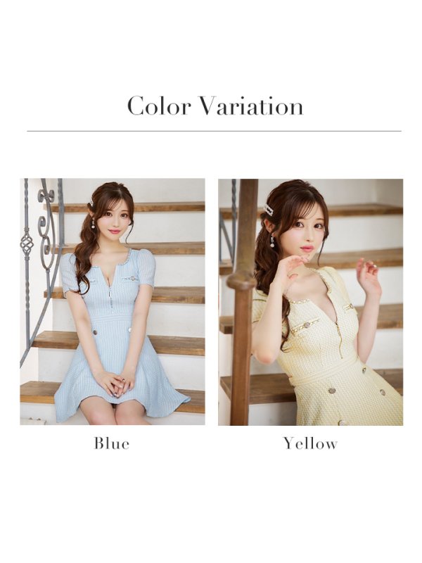 XSサイズあり【an/アン】チェーンパイピング/ フロントジップ/ 半袖/ 袖あり/ ボックスプリーツ/ バックリボン/ フレア/ ミニドレス/ キャバドレス[OF05] [AOC3710-BL-S240723]