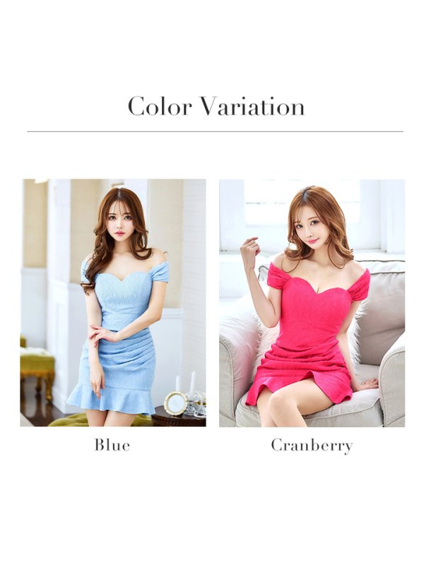 XSサイズあり【Donia Quinn / ドニアクイーン】 オフショルダー/ マーメイド/ ハート/ タック/ 裾フリル/ ミニドレス/ キャバドレス[OF05]