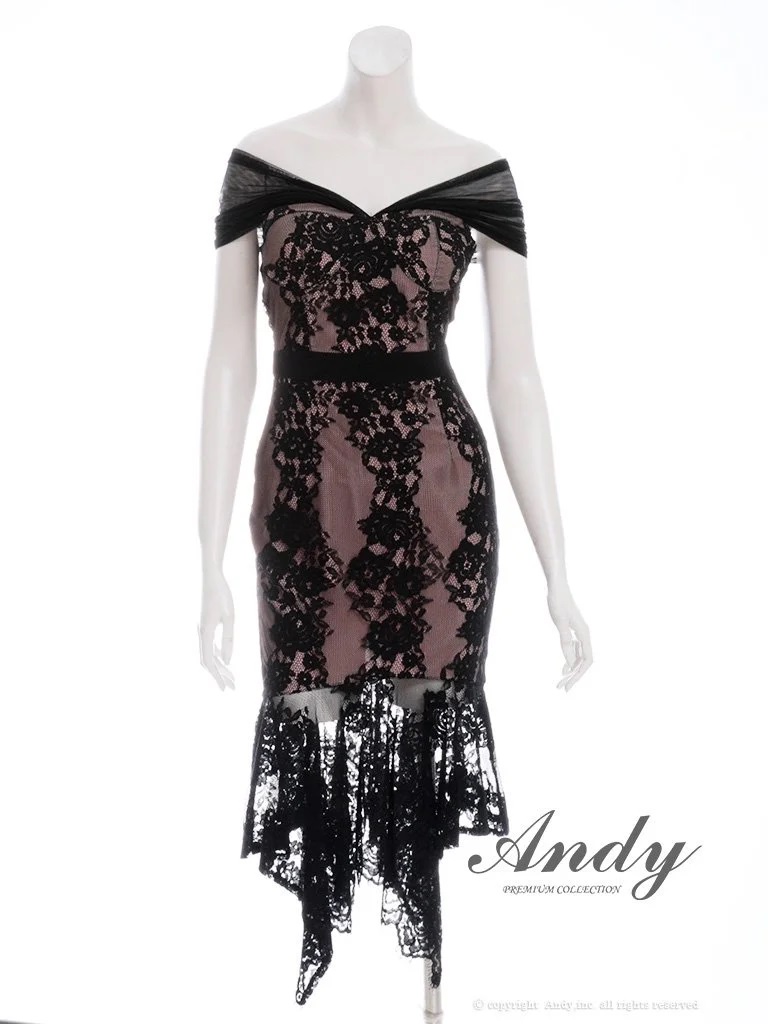 - > 【ANDY/アンディ】 レース/ アシメ/ カットアウト/ フリル/ オフショルデザイン/ 膝丈/ ミディアムドレス/ キャバドレス[OF05]
