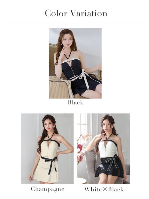 XSサイズあり【IRMA/イルマ】バイカラー/ バストカットアウト/ ホルターネック/ フロントジップ/ リボンベルト/ ボックスプリーツ/ セットアップ/ ミニドレス/ キャバドレス[OF2A] [45986-IR-B-S240827]
