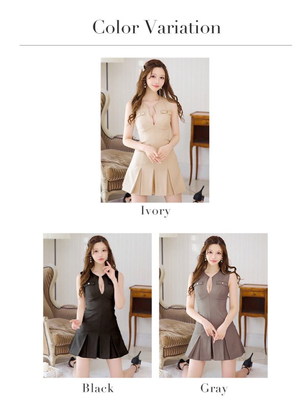 - > XS-Lサイズあり【DEA./ディア】シンプル/ バストカット/ ノースリーブ/ プリーツ/ フレア/ ミニドレス/ キャバドレス[OF08]