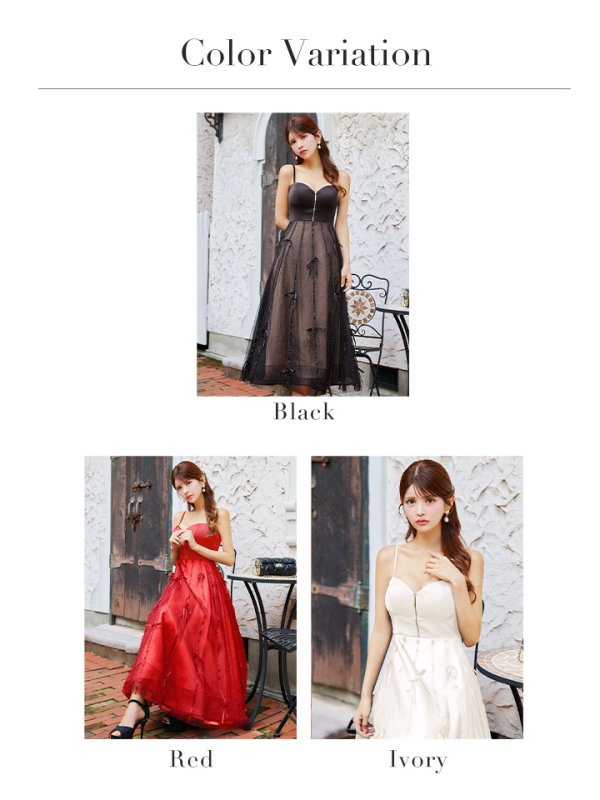 - > Lサイズあり【ROBE de FLEURS/ローブドフルール】センタージップ/ フレア/ リボンチュール/ Aライン/ ミディアムドレス/ キャバドレス[OF08]