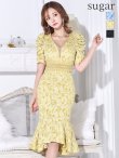 Lサイズあり【VANESSA HEART / ヴァネッサハート】【OF05】 マーメイド/ フラワーレース/ 袖あり/ パフスリーブ/ 半袖/ 膝丈/ ミディアムドレス/ キャバドレス [H60151H-ClnYE-S2409]