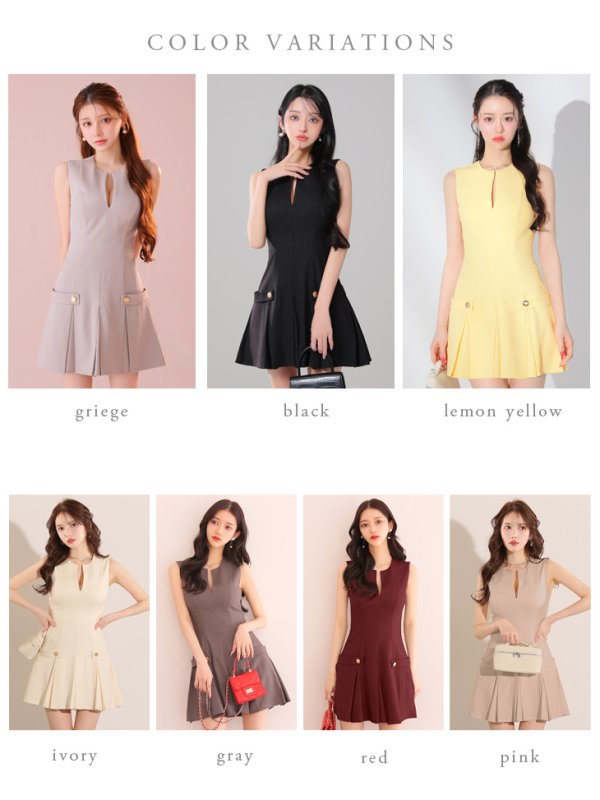 XS-Lサイズあり【DEA./ディア】シンプル/ サイドベルトモチーフ/ ノースリーブ/ プリーツ/ フレア/ ミニドレス/ キャバドレス[OF08] [DE3362-GY-2409]