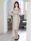 Lサイズあり【JEAN MACLEAN/ジャンマクレーン】バイカラー/ ノースリーブ/ ゴールドボタン/ タイト/ ひざ丈/ ミディアムドレス/ キャバドレス[OF2A] [45990-JM-BE-S240928]