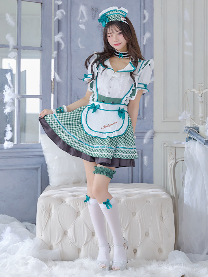 メイド 甘い あざと コンカフェ スイート あまい フレア ミニ ワンピース コスプレ 赤 レッド グリーン 緑 チェック