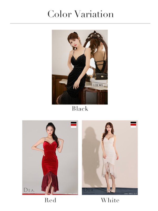 Lサイズあり【DEA./ディア】シンプル/ バックリボン/ ベロア/ キャミ/ フリル/ マーメイド/ ミディアムドレス/ キャバドレス[OF08] [DE3615-B-S240925]