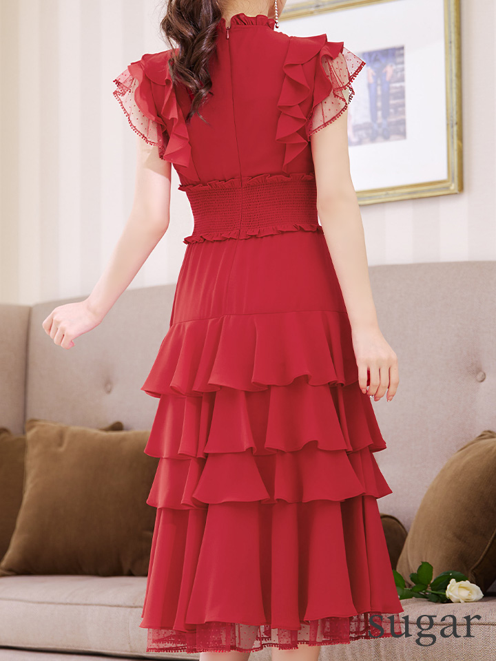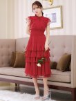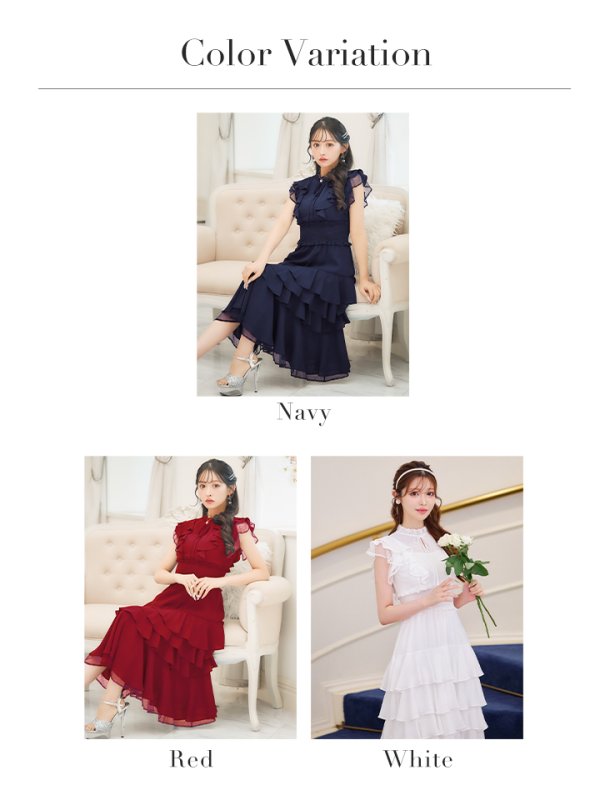 - > XS-Lサイズあり【SETTAN/セッタン】ハイネック/ リボン/ シアー/ フリル/ ドット/ 膝丈/ ミディアム丈/ Aライン/ フレア/ ワンピース/ キャバドレス[OF2]