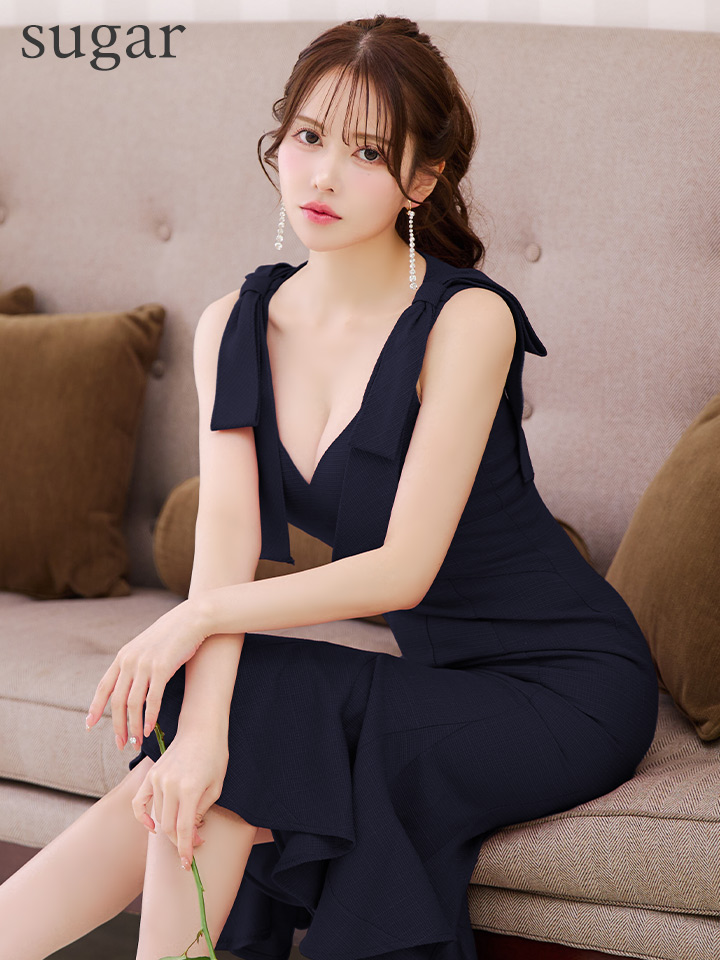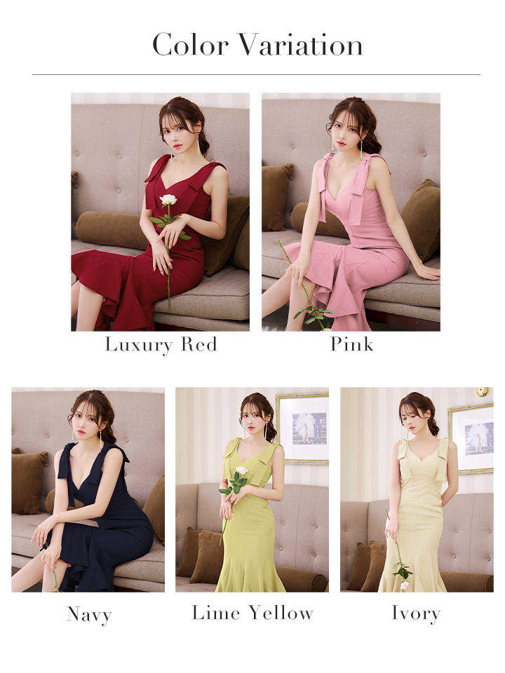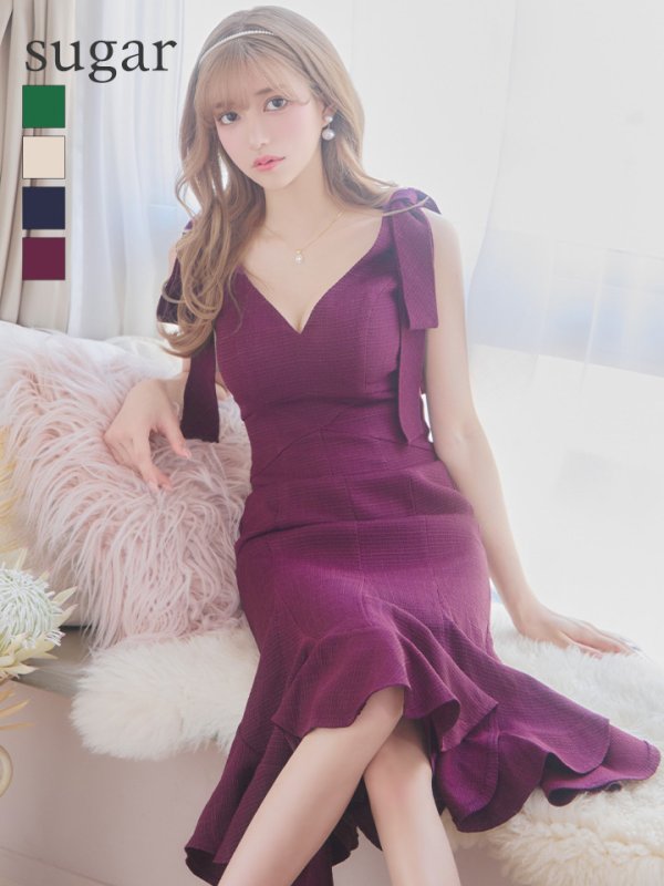 - > XS-Lサイズあり【DEA./ディア】ショルダーリボン/ マーメイド/ ノースリーブ/ ワンカラー/ ミモレ丈/ ミディアムドレス/ キャバドレス【OF08】
