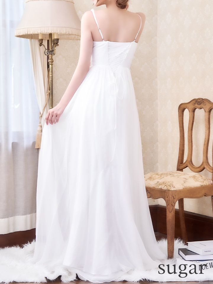 Lサイズあり【JEAN MACLEAN/ジャンマクレーン】ビジュー刺繍/ シフォン/ ノースリーブ/ スリット/ Aライン/ フレア/ ロング/ キャバドレス long【HC02】