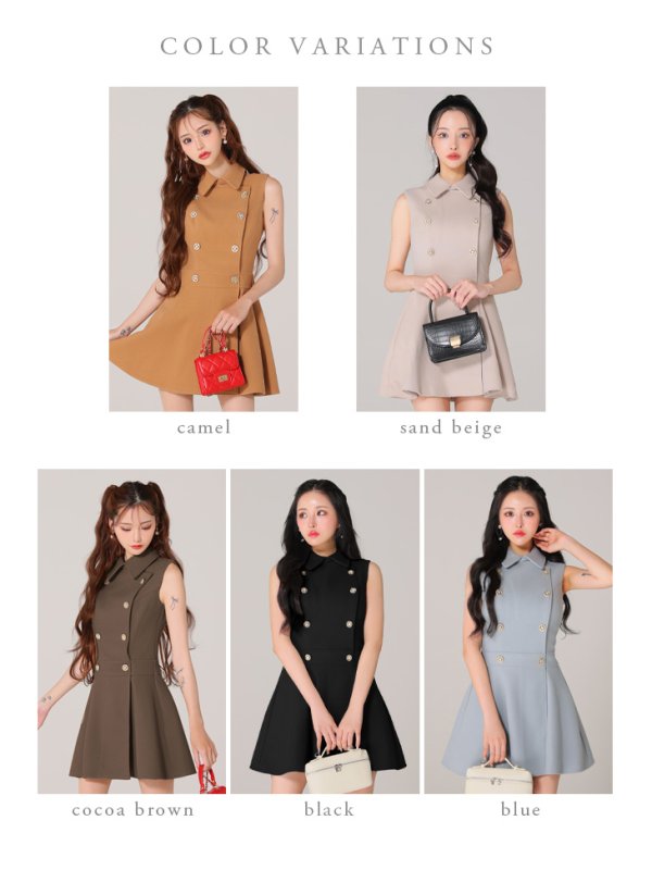 - > XSサイズあり【DEA./ディア】襟付き/ ノースリーブ/ ダブルボタン/ フレア/ Aライン/ ミニドレス/ キャバドレス[OF08]