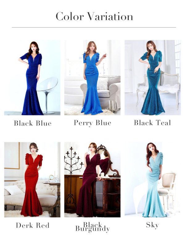 L-XLサイズあり【UNA VALERIE / ウナヴァレリェ】 ラメ/ 半袖/ 袖あり/ ウエストタック/ マーメイド/ ロングドレス long[OF05]
