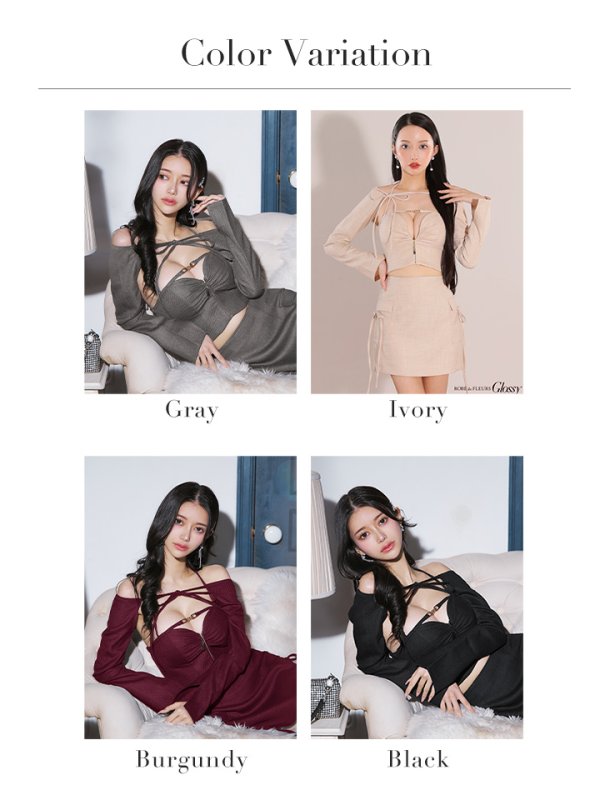 - > XSサイズあり【Glossy/グロッシー】2way/ リボンデザイン/ バストジップ/ セットアップ/ タイト/ ミニドレス/ キャバドレス[OF08]