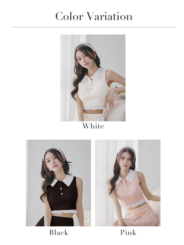 - > 再入荷【ROBE de FLEURS/ローブドフルール】襟つき/ スパンコール/ ツイード/ ノースリーブ/ セットアップ/ フレア/ ミニドレス/ キャバドレス[OF08]