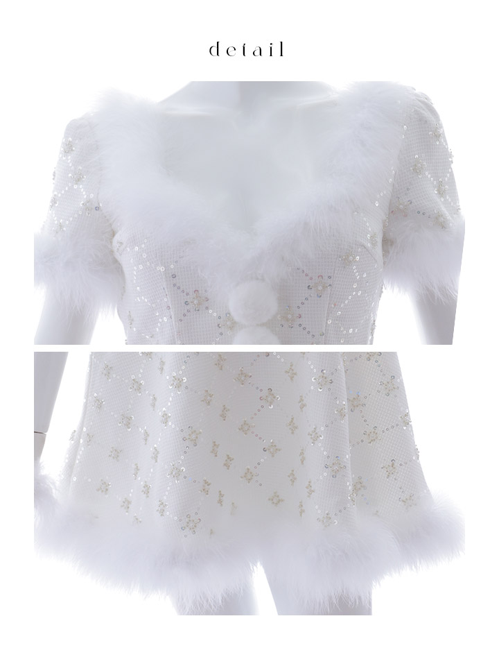 #フレア #半袖 #袖あり #パール #ビジュー #Aラインスカート