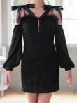 - > XSサイズあり【an /アン】袖あり/ ショルダーリボン/ ファー/ 取り外し可能/ バストジッパー/ チェーン/ キャミソール/ タイト/ ミニドレス/ キャバドレス[OF05]