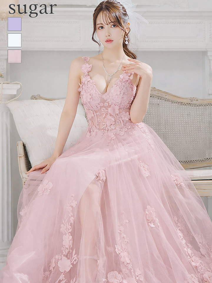立体フラワー刺繍が華やかかつ、存在感抜群のプリンセスロングドレス♡