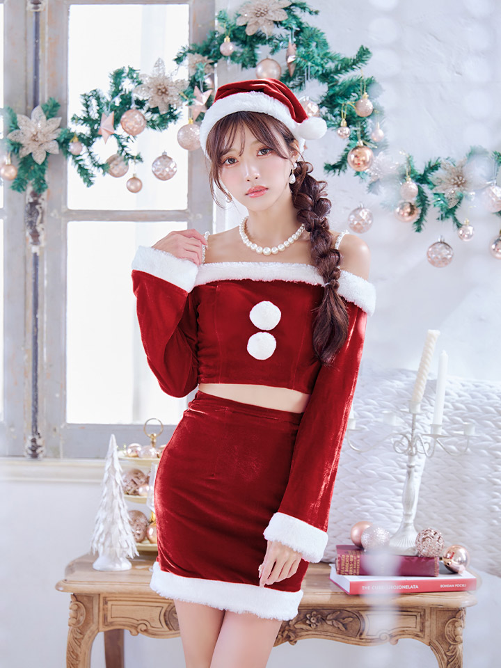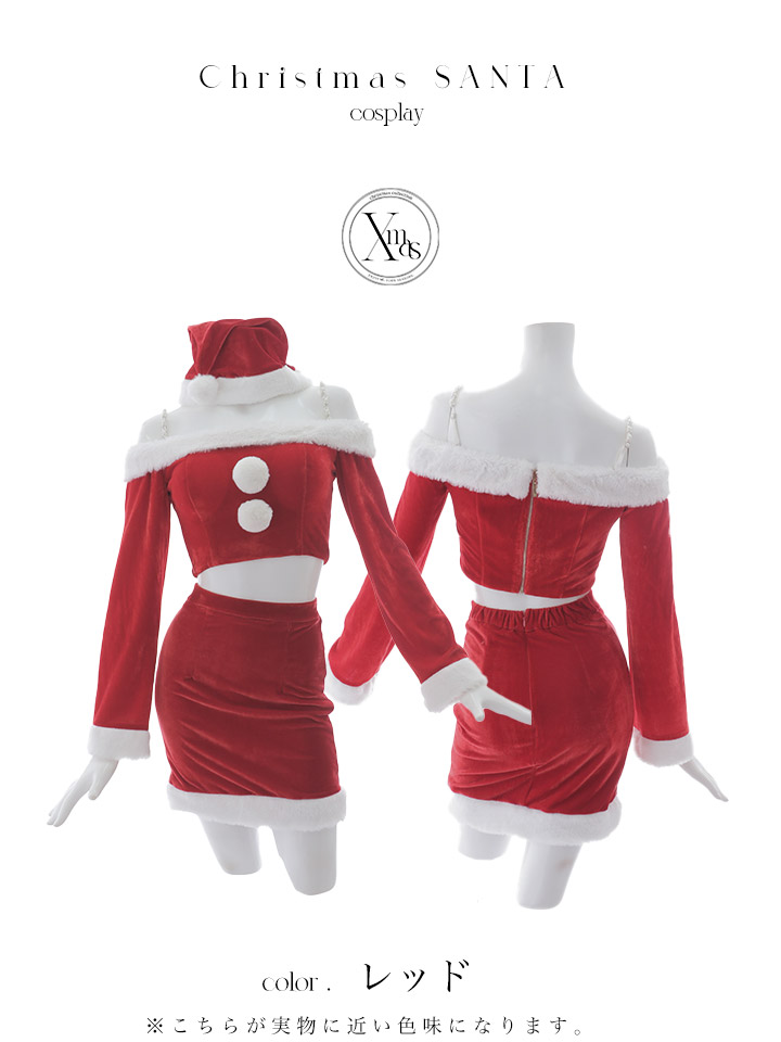 - > 【即日発送】【サンタコス 4点セット】【S-Lサイズ/2カラー】オフショルダーセットアップサンタコスプレ[OF01]