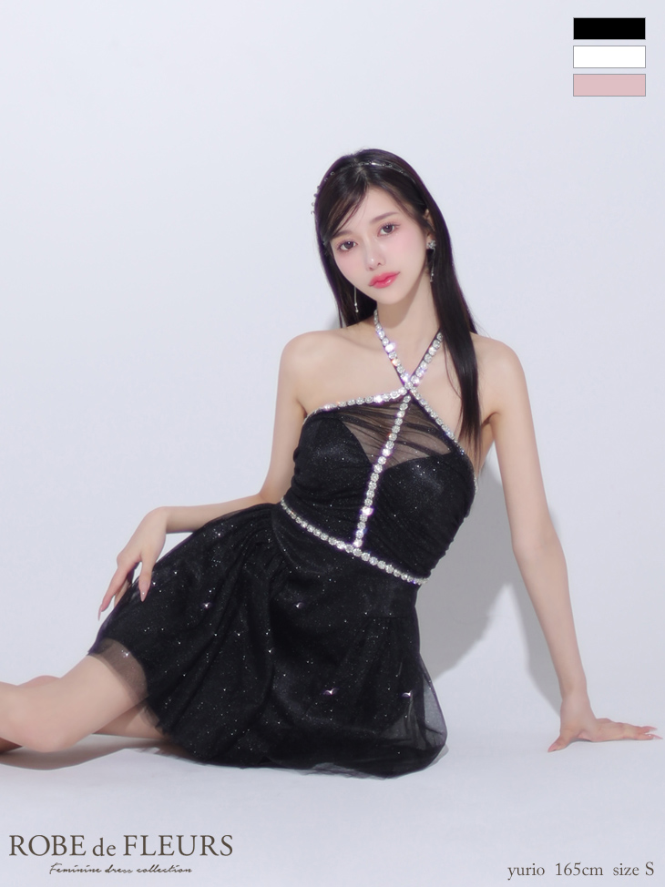 XSサイズあり【ROBE de FLEURS/ローブドフルール】バレエコア/ ラメチュール/ ビジュー/ フレア/ ミニドレス/ キャバドレス[OF08]