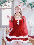 季節感を演出するベロア素材と2段フレアが可愛いパーティーやイベントにもぴったりなサンタコスプレ。